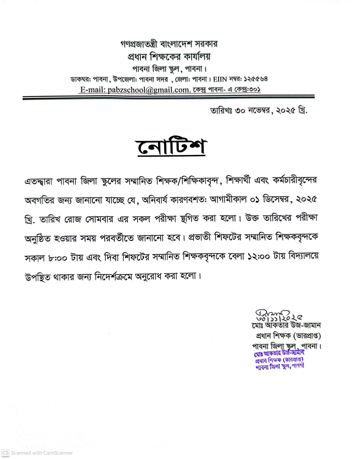 ০১ ডিসেম্বর, ২০২৫ এর সকল পরীক্ষা স্থগিত প্রসঙ্গে।